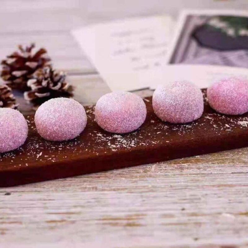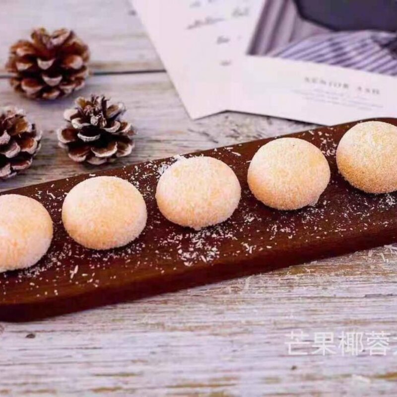 雪媚娘源自日本,原名为“大福”,又名升级版驴打滚儿,是日本的地道点心之一,外表皮是Q弹的雪媚娘冰皮,在日本它的馅料都是当季的真材实料的水果为主。 “雪媚娘”这个名字源于日本当地发明各种草莓大福的一位夫人,而我们制作的雪媚娘也是她的代表作之一。 雪媚娘细白软糯,第一口咬到的是特别Q弹有嚼劲的冰皮,里面是奶香怡人的淡奶油,裹着好吃的水果粒,比如芒果、草莓、奥利奥等。 酸酸甜甜、口感丰富。 “雪媚娘”冷藏后的口感更佳,轻轻一口下去,细软中还带着隐隐的甜意和凉意。西茄雪媚娘,沿用轻施手粉风格,内馅采用鲜果,是传统雪媚娘的最重要流派。