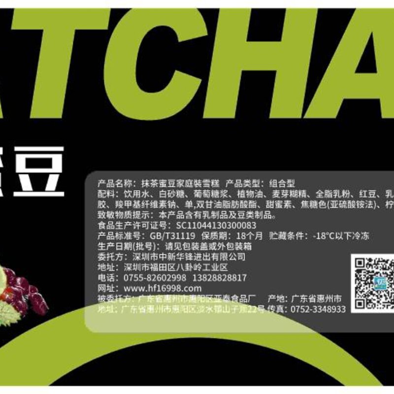 【原料与配料】:饮用水、白砂糖、葡萄糖浆、植物油、麦芽糊精、全脂乳粉、红豆、乳清粉、抹茶、食品添加剂[瓜尔胶、黄原胶、羧甲基纤维素钠、单,双甘油脂肪酸酯、甜蜜素、焦糖色(亚硫酸铵法)、柠檬黄、亮蓝]、食盐、食用香精香料。